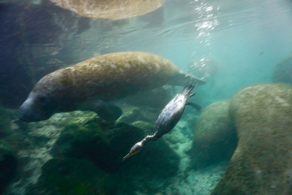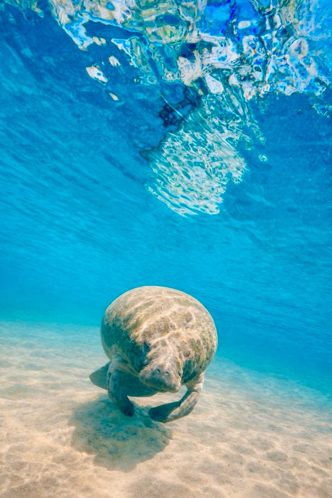 The manatees moved with the falling tide, just as I had hoped. Slow, deliberate, ancient. Some cruised past in open blue water. Others drifted near the surface, their reflections creating perfect mirrored portals.