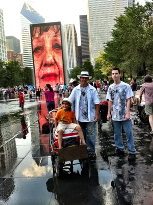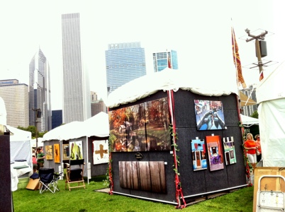 Set up took a little longer as we had to dolly everything in to Grant Park. The weather was hot and muggy so we also had set up a second tent for shade. My brother was a big help for us.